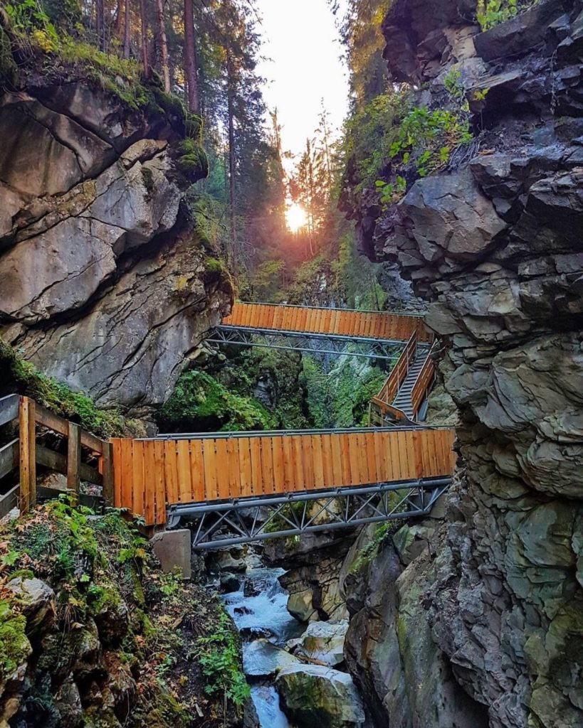 In Valle Isarco, vicino a Vipiteno nel paese di Stanghe si trovano le indicazioni per un sentiero che porta nel bosco e al percorso di visita di queste bellissime cascate. Il percorso risale alla fine dell’Ottocento e fu voluto dal”Imperatore Francesco Giuseppe affascinato dalla bellezza di questo posto dove il fiume ha scavato una gola profondissima e suggestiva. Il percorso alle cascate di Stanghe è fatto di passerelle, scale e punti di belvedere e in tutto si percorre in un’ora circa.